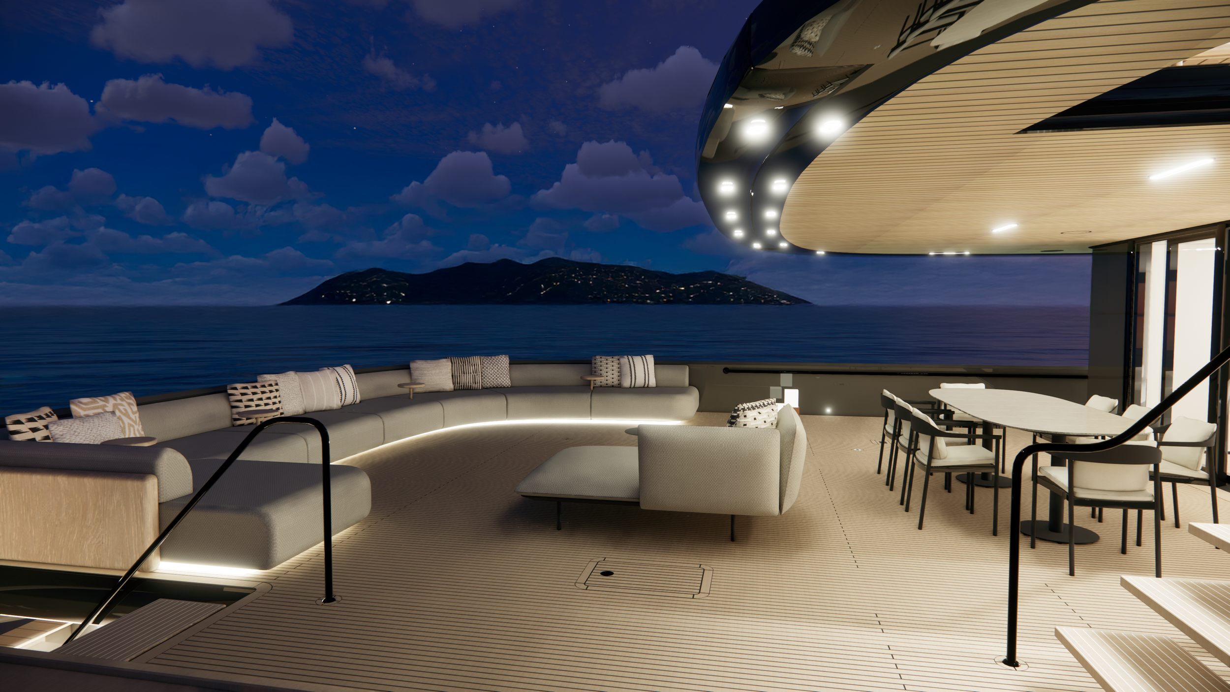 Using AI Technology such as Gemini Nano Banana and Open Art AI to build on 3D renderings to create atmospheric render views showing the vessel in movement and in different lighting and use conditions.