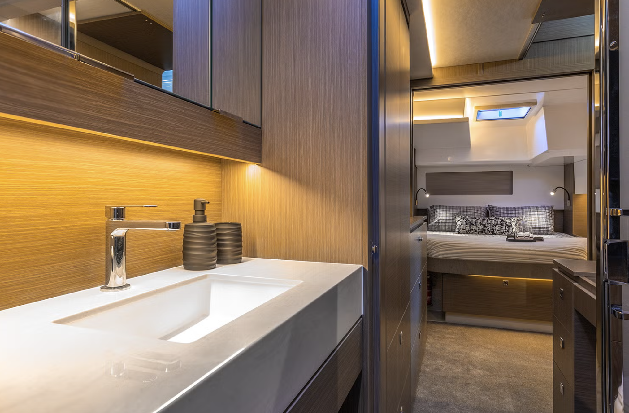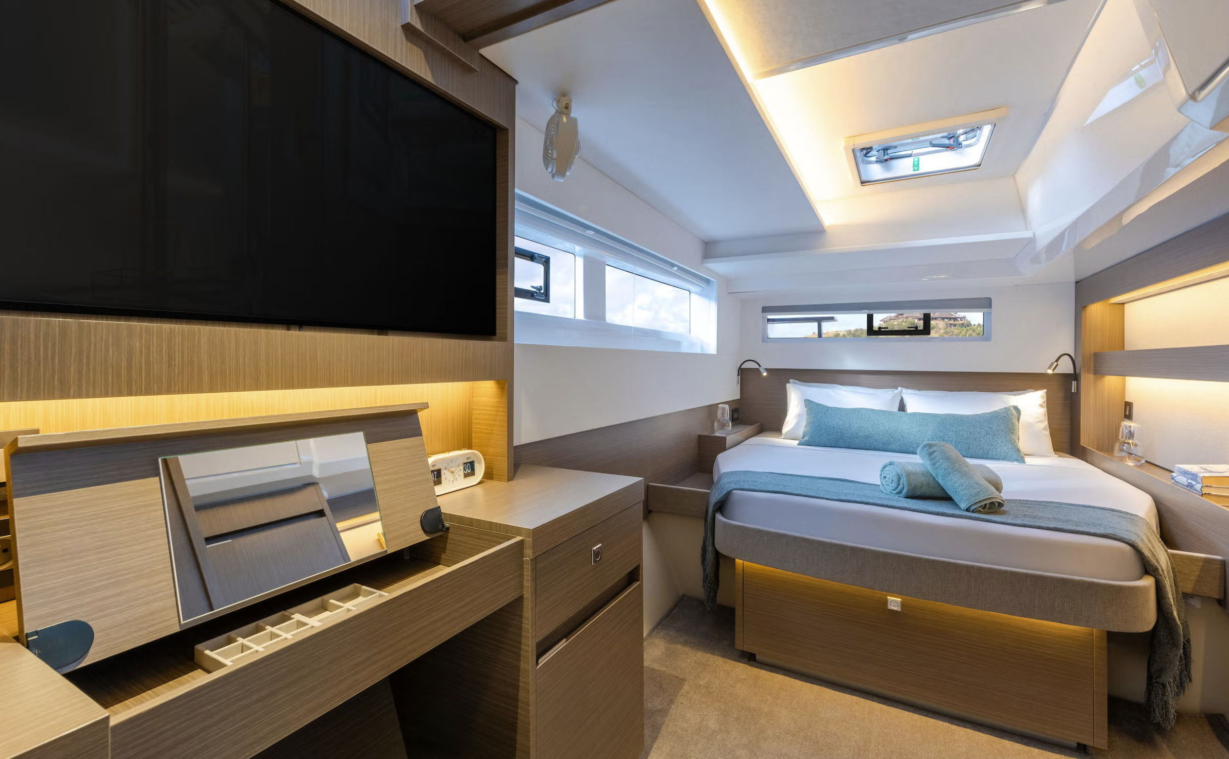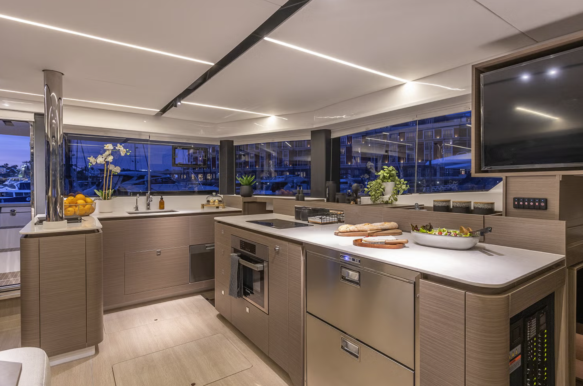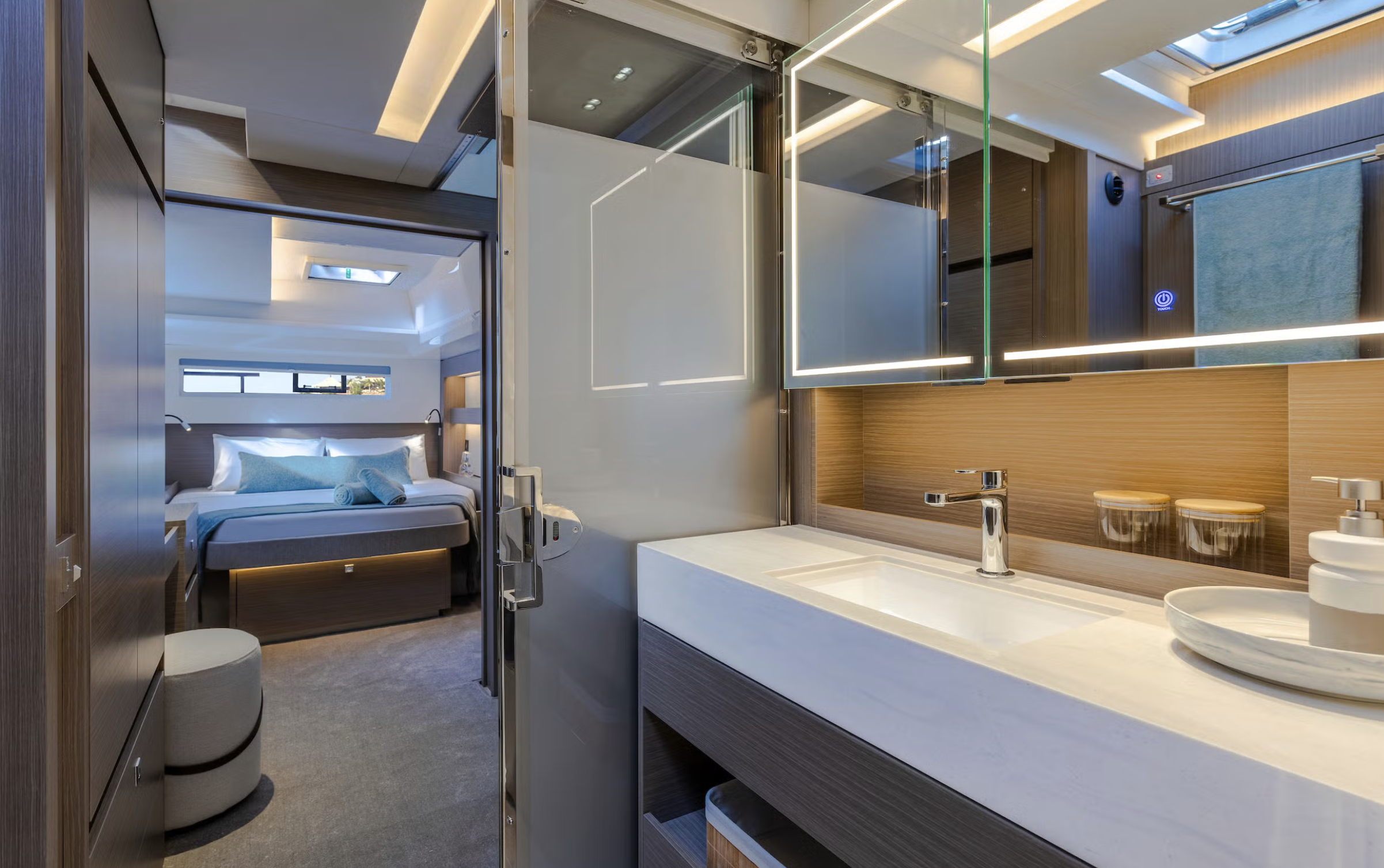 The result is a serene, practical, and quietly luxurious interior that feels welcoming and well-suited to life on the water—something I’m quietly pleased contributed to the Leopard 53’s character as a capable blue-water power catamaran.