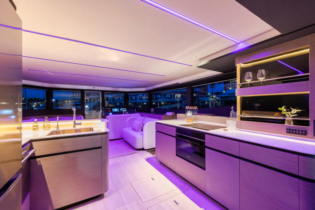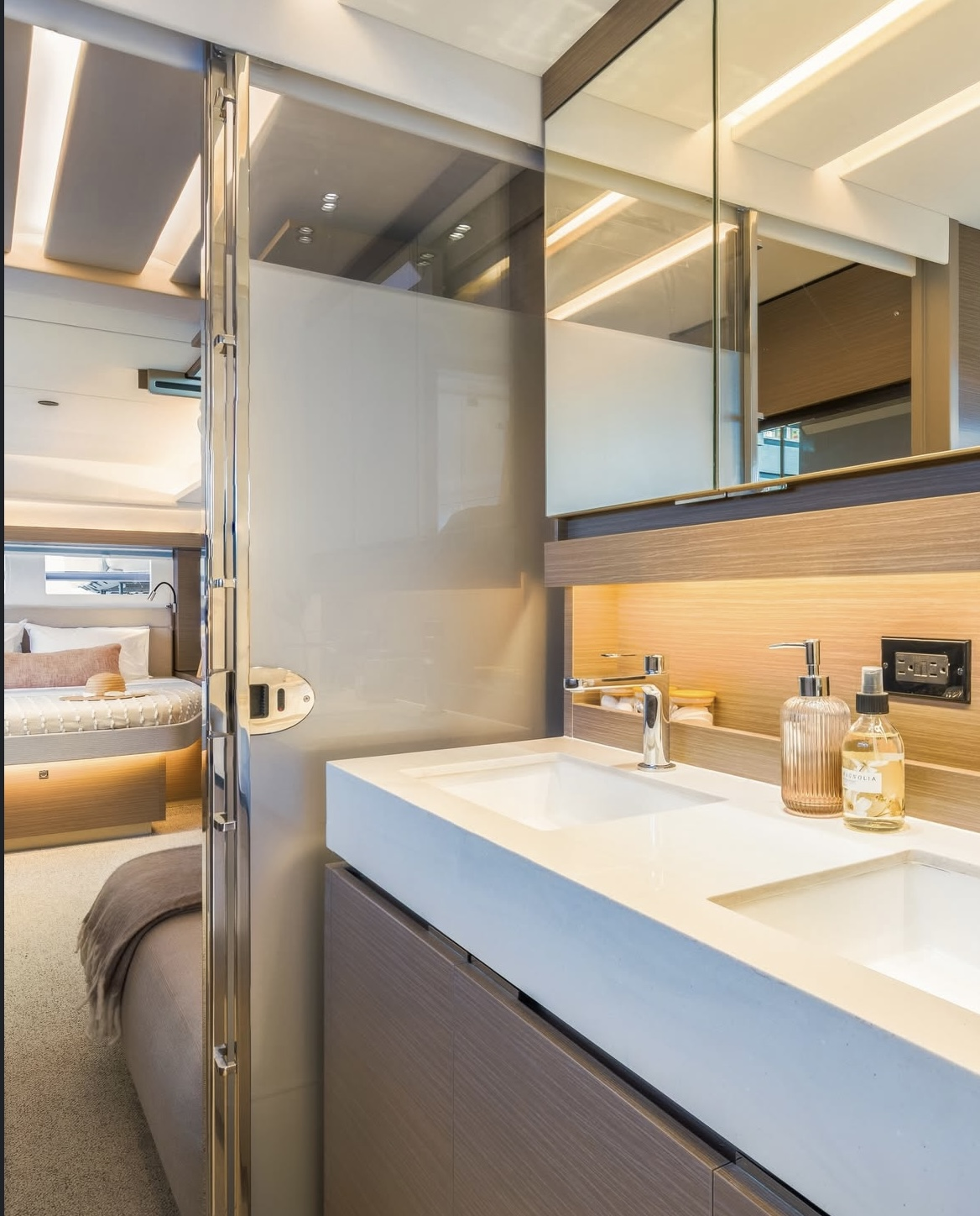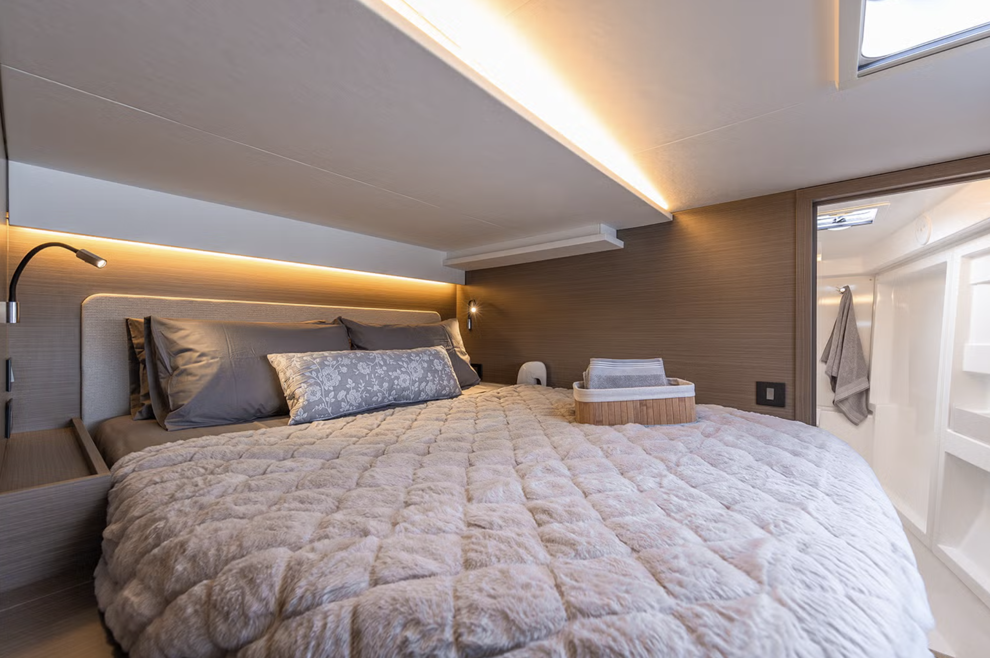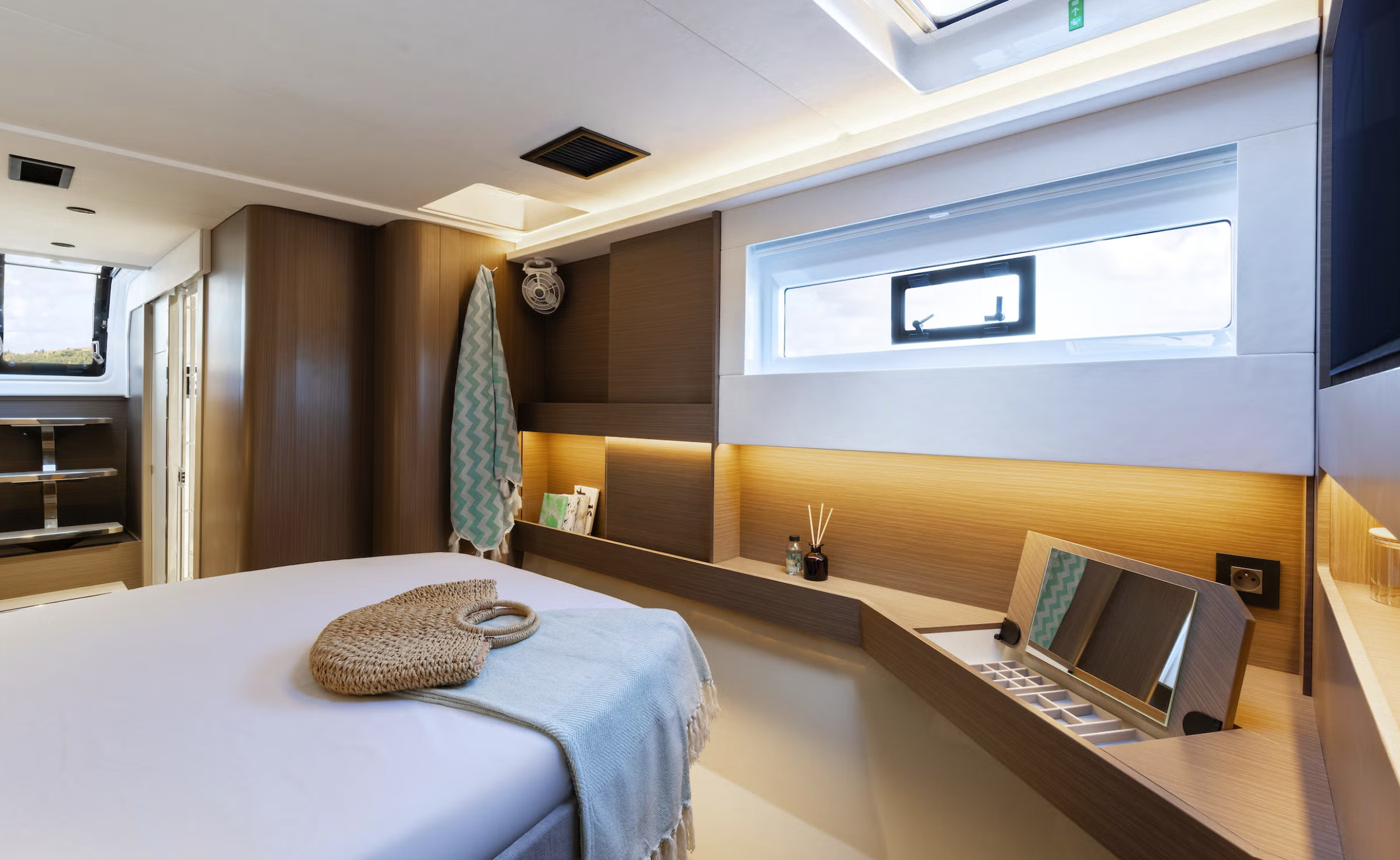 The result is a serene, practical, and quietly luxurious interior that feels welcoming and well-suited to life on the water—something I’m quietly pleased contributed to the Leopard 53’s character as a capable blue-water power catamaran.